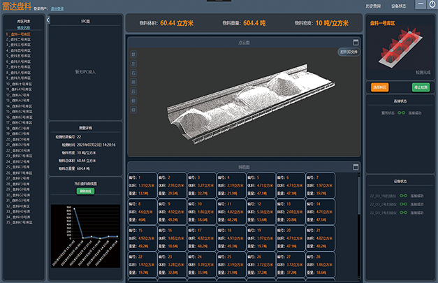 通過應用算法,支持輸出物料體積、三維點云、網(wǎng)格化數(shù)據(jù)等信息。