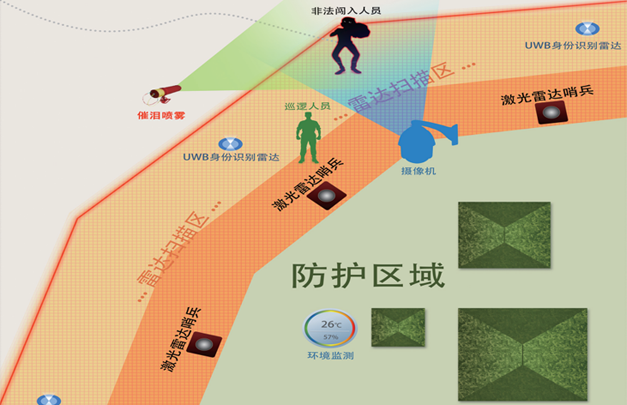 采用激光精準(zhǔn)定位技術(shù),實(shí)現(xiàn)厘米級(jí)精準(zhǔn)定位,對(duì)入侵者的軌跡進(jìn)行跟蹤、實(shí)時(shí)距離顯示